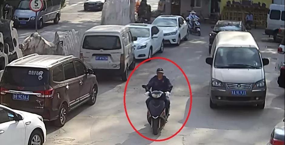 大华新村派出所接报后,查看监控,发现嫌疑人为一名骑着摩托车的男子。